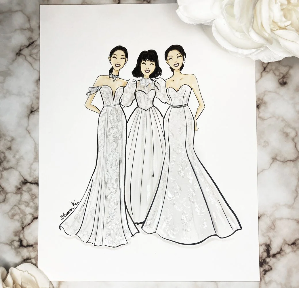 “I just got the sketch today and I could actually cry!! You did such a BEAUTIFUL job, I’m floored by your talent!! You captured us and our dresses perfectly!! Thank you so so much, this is going to mean so much to my mom!” - Cherish F. - Mother-Daughter Heirloom Wedding Illustration